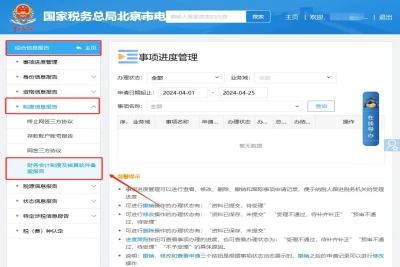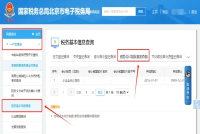 二、我要查詢—一戶式查詢—稅務(wù)基本信息查詢—財(cái)務(wù)會計(jì)制度備案查詢。
